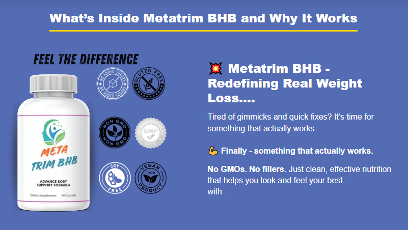 MetaTrim BHB is a premium weight loss supplement designed to support fat burning and metabolism in a natural, body-friendly way. Created for people who want real results without extreme diets or exhausting workout routines, MetaTrim BHB blends modern nutritional science with carefully selected ingredients to help your body work smarter—not harder.
